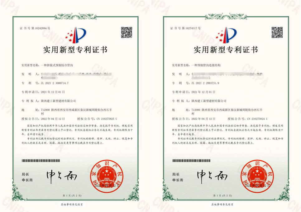 近日,經(jīng)國家知識(shí)產(chǎn)權(quán)局審批,我司研發(fā)的兩項(xiàng)預(yù)制管溝技術(shù)---一種拼裝式預(yù)制綜合管溝、一種預(yù)制管溝連接結(jié)構(gòu),成功通過專利授權(quán)。