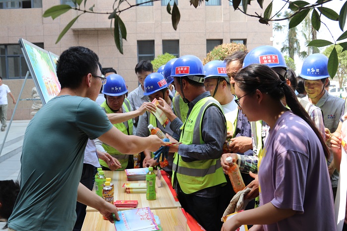 活動現(xiàn)場廣大員工來到咨詢臺,對自己不了解的問題進(jìn)行咨詢,并且積極參加安全生產(chǎn)燈謎答題活動。參加活動的員工或在拿著安全生產(chǎn)燈謎認(rèn)真思索著答案或?qū)χ鴪D片展板看看哪里有隱患,通過活動,更加加深了員工對安全知識的了解和掌握,隨后,公司深入車間和一線職工中發(fā)放宣傳資料,與職工面對面互動交流,宣講安全生產(chǎn)方針政策,普及安全生產(chǎn)法律、法規(guī)和安全知識,同時(shí)開展了“送清涼囑安全”慰問活動,為員工發(fā)放了清涼飲料及防暑降溫用品,叮囑大家時(shí)刻注意安全,為安全生產(chǎn)再做新貢獻(xiàn)。